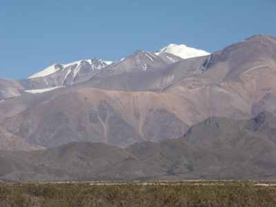 Nous avons pris possession de notre voiture (une petite Chevrolet) et direct à San Juan, à 180 km au nord de Mendoza. La route longe les contreforts des Andes où ne poussent que de la vigne et des oliviers. Sinon, le désert...