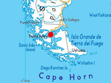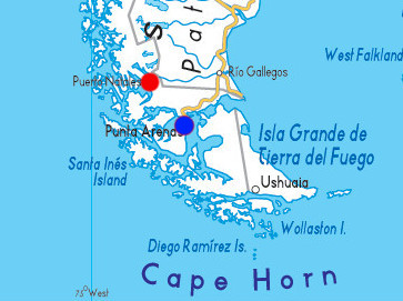 A Punta Arenas, nous nous rendons compte que le lac qui est devant nous, finalement, c'est le détroit de Magellan ! Surprise...