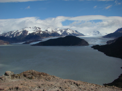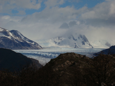 28 janvier : après cette nuit blanche, nous laissons nos sacs au camping (c'est tout de suite plus facile de marcher) et rejoignons en 2 h et demi, un mirador duquel s'offre à nos yeux éblouis un immense glacier de 5 km de large sur 27 km de long. Des pans se détachent formant ainsi des icebergs ! Une vue que nous ne sommes pas prêts d'oublier. Retour au campement et bateau et bus vers Puerto Natales