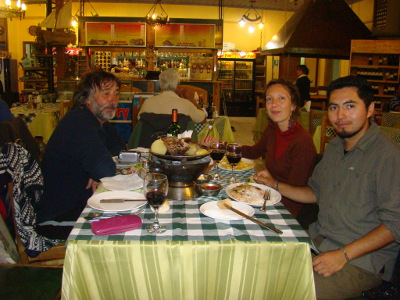 Repas avec Amélie et Luis qui nous ont si bien reçus et aidés pendant notre séjour ici.
