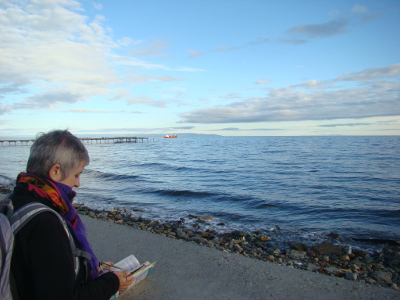 En début d'après-midi, bus pour Puerto Natales (3 heures de route) et les premières montagnes andines enneigées apparaissent. Rencontre avec Amélie (une amie de Maïtena) et son ami Luis); avec qui nous préparons notre sortie au parque de Paine où nous irons pour 4 jours après demain, mais ceci est une autre histoire.