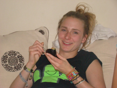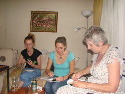 Et le soir, nous avons des invités chez nous, à l'appartement : Lola (de Bélus, la fille d'Anita), et sa copine Margaux, (de Biarritz) qui sont ici pour études: un bain de jouvence.