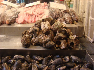 Il fait toujours beau ; nous allons au marché central : les étals de poissons et fruits de mer typiques, mais nous n'y mangeons pas, c'est vraiment trop touristique.