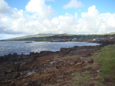 Une éclaircie, nous allons au village, Honga Roa, le seul de l'île qui ne compte que 3000 habitants (équivalent de Peyrehorade) et nous rencontrons nos premières statues.