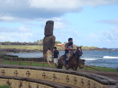 Que nos fidèles lecteurs nous excusent pour ce retard dans la mise en ligne de cette journée : nous étions hier soir au cinéma !!! En effet, un hôtel projette presque tous les soirs un dvd, intitulé "Rapa Nui" (Ile de Paques) qui est à la fois documentaire et fiction, une fiction toute hollywoodienne, mais pas dénuée d'intérêt. Une soirée agréable...