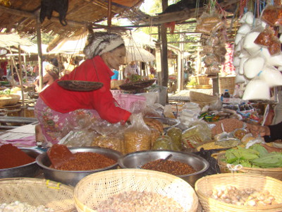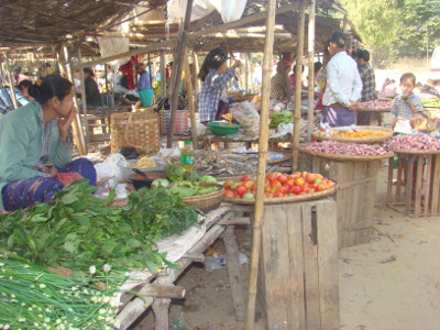 Mais avant de partir, nous traversons le marché de Bagan, quartier neuf (New Bagan)