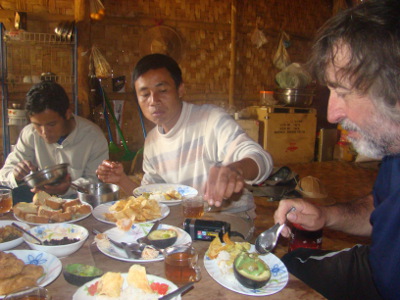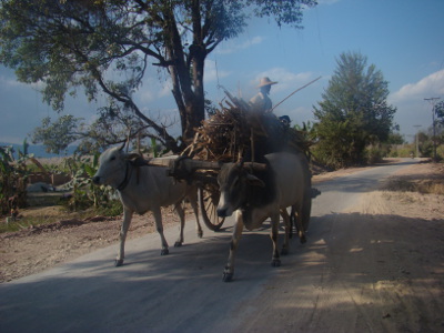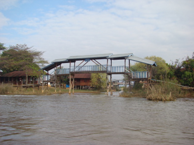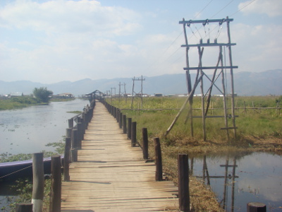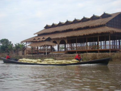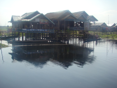 Comme prévu et craint, problèmes de clim dans le bus ; à 3 heures, nous sommes à Nyaungshwe ; des pick-up nous amènent à l'hôtel que le gérant ouvre pour nous. Mais toutes les chambres sont prises et nous dormons dans la cabane de la réception. Il fait un froid !!!!!