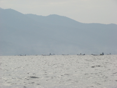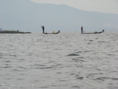Nos premiers pêcheurs (ethnie intha) sur le lac (voir le repas d'hier soir)