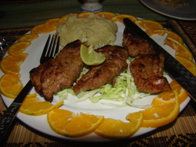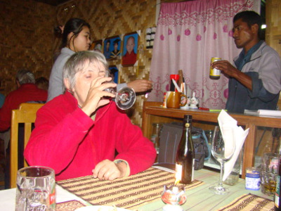 Et le soir super gueuleton : proc grillé-purée avec ... un vin rouge d'ici, du lac Inle !!!