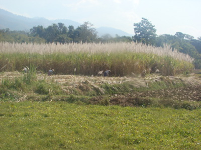 Nous sommes entourés essentiellement de champs de cannes à sucre