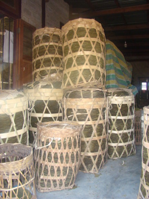 La journée de travail est finie. Les charrettes chargées de cannes à sucre;;;