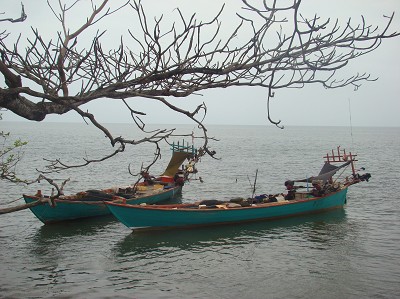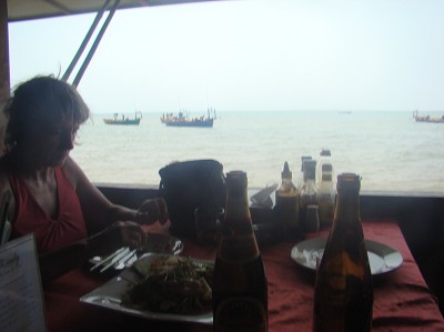 Une petite demi-heure pour rejoindre Kep, petit village côtier où il n'y a même pas de banque, mais qui a connu son heure de gloire avant l'époque des khmers rouges.(Les riches Cambodgiens et Français y avaient fait construire de superbes villas). Ils l'ont quasiment rasé et y sont restés jusqu'en 1998