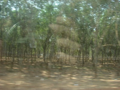 Les forêts d'hévéas dont la sève récoltée comme la résine, sert à fabriquer le caoutchouc