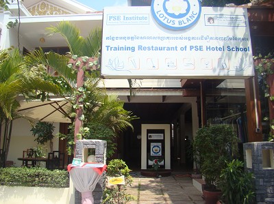Nous mangeons dans un restaurant géré par une association qui réinsère les enfants qui vivent dans les poubelles.