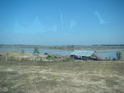 Jeudi 8 janvier : transfert à Mandalay : taxi jusqu'à la gare routière et à 9 heures nous démarrons vers le nord dans un bus très confortable. Pendant les 8 heures de trajet, nous remontons une plaine où alternent la culture du riz, des bananes et l'élevage des buffles...