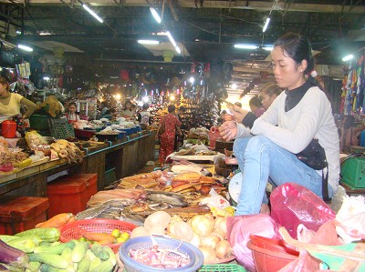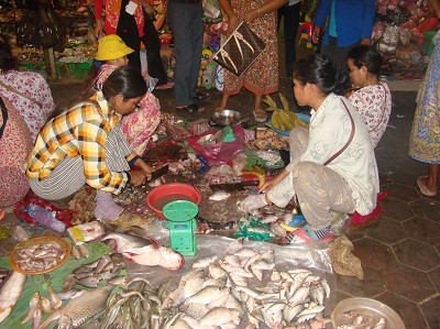 Le vélo et la chaleur nous ont bien fatigués ; nous nous reposons un peu en organisant la fin de notre voyage, puis visite au marché et au musée d'Angkor