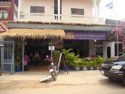 Nous mangeons à Sala Baï, un hôtel-restaurant tenu par une ONG française et qui réinsère par ce biais des jeunes décrocheurs