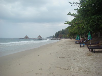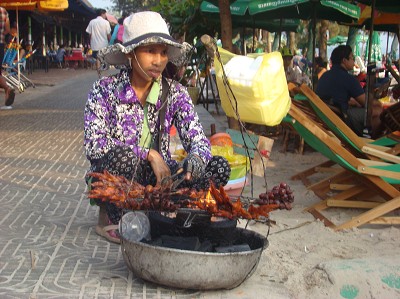 n minibus, en 3 heures, nous rejoignons Sihanoukville, la seule ville réellement balnéaire du Cambodge.Là, tous les ingrédients des plages plus la prostitution à moyenne échelle, où de vieux occidentaux s'offrent la chair fraîche des Cambodgienens