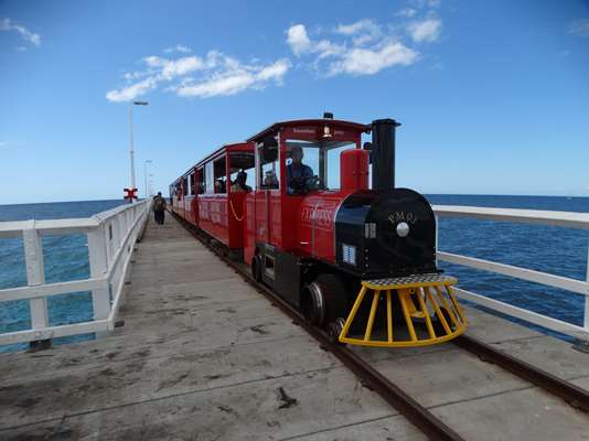 Cette jetée mesure 1,8 kilomètre !!! ; elle a été récemment rebâtie et est parcourue par un petit train dont voici la gare de départ (d’époque mais rénovée)