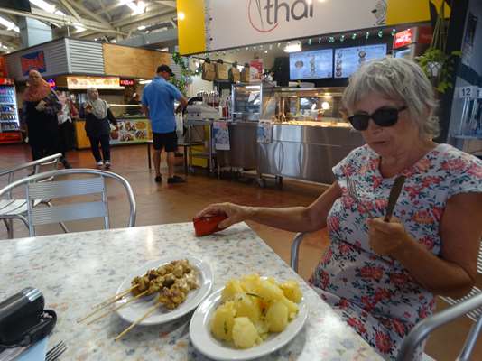 A proximité du port de grandes halles transformées en boutiques-souvenirs et restaurations rapides où nous mangeons thaï