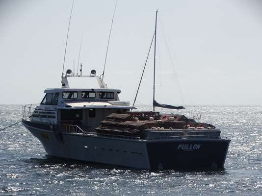 et un bateau avec ses casiers prêt à sortir ; la richesse ici, ce sont les langoustes