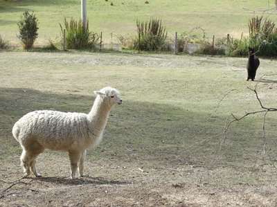 dans un pré : lamas ou alpagas, on ne sait pas encore