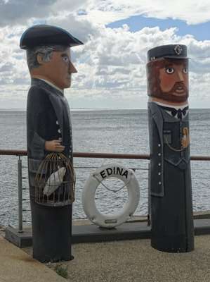 Marrantes ces statuettes en bois qui jalonnent le front de mer et représentent des groupes locaux (fanfares, sauveteurs, pompiers.....