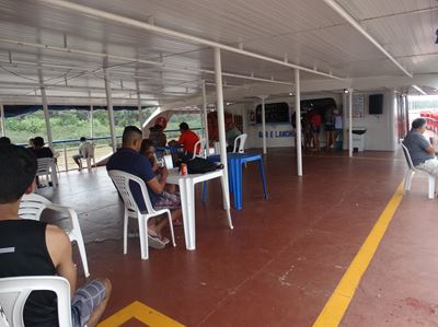 S'il y a un investissement que nous ne regrettons pas, c'est bien celui de notre cabine : après l'escale à Santarem, le nombre de passagers a doublé, le bar a disparu, couvert par les nouveaux hamacs. Les hamacs sont à touche-touche, pas d'intimité, les bagages sont au-dessous, ils ne peuvent pas les laisser seuls .... Bref, des conditions de voyage pas terribles