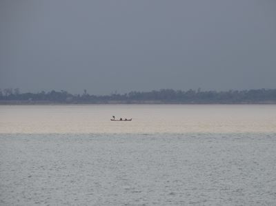 Nous sommes surpris par ces gamins en barque qui s'approchent du bateau. En fait, les voyageurs leur lancent des poches, d'habits.