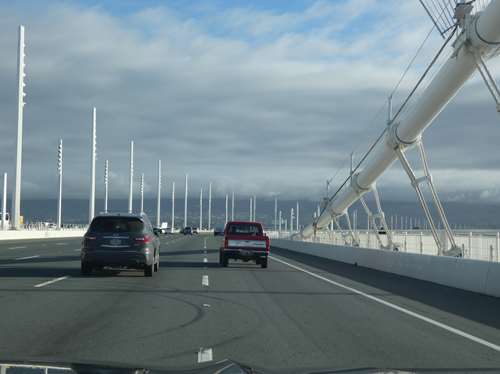 Nous prenons ensuite l'immense pont qui conduit à Oakland : notre direction passe sur le tablier inférieur, alors que ceux qui entrent dans SF passent au-dessus