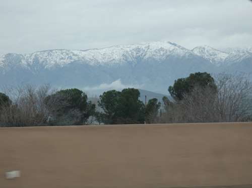 Nous longeons des montagnes dont les sommets sont enneigés, ce qui nous rappelle que nous sommes toujours en hiver