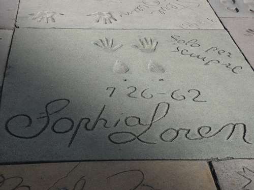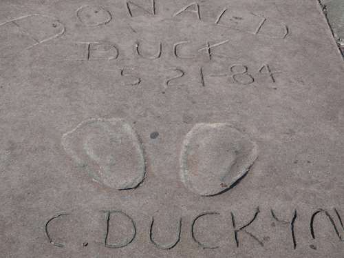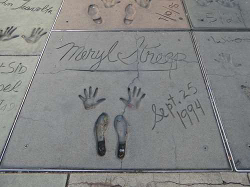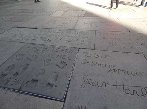 Ici, ce n'est pas dans une étoile, mais dans du ciment que les stars ont moulé leurs empreintes (pieds et mains)