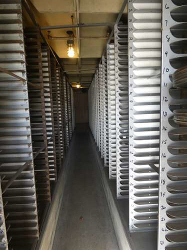 C'est ici que sont entreposées les bobines, à l'abri du feu : un incendie a tout ravagé en 1932