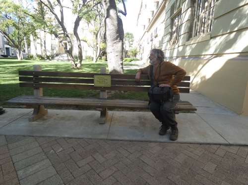 On le retrouve ici répétant une scène de Forrest Gump, en attendant le retour de Sally Field qui est aux toilettes (c'est une vraie scène sur ce vrai banc)