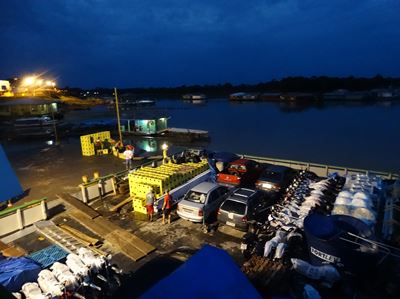 Toc, toc, toc : Mara toque à la porte de la cabine : "Tabatinga, Tabatinga! ". Quel n'est pas notre étonnement quand elle ajoute : il est trois heures ! En effet, nous devions arriver à Tabatinga à midi... et notre téléphone marque 4 heures.
