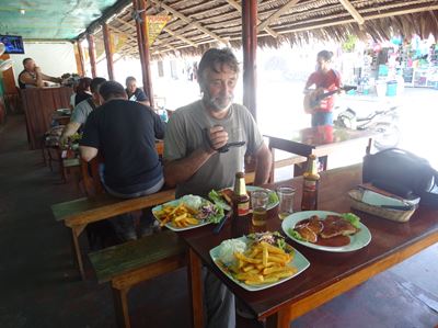 Le capitaine nous ayant dit que le bateau repartirait à 15 heures, nous partons déjeuner au port avec Philippe.