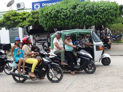 Il nous faut maintenant faire les formalités de la frontière : tampons de sortie du Brésil et d'entrée en Colombie. Evidemment, ces deux organismes sont à l'opposé l'un de l'autre, il nous faut un tuk-tuk