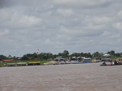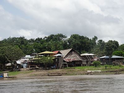 Notre bateu étant un bateau de ligne régulière, ce qui nous surprend, c'est le nombre de petits villages où il s'arrête : les rives de l'Amazone sont très peuplées