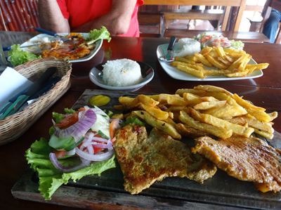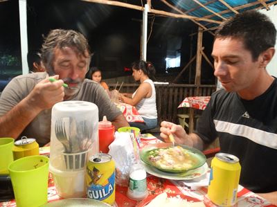 Toujours au même restau à Leticia : le midi, porc à la plancha et le soir sopita (petite soupe)