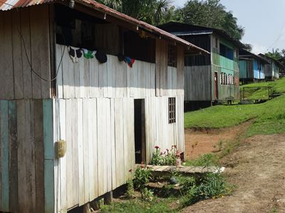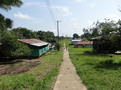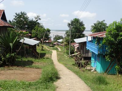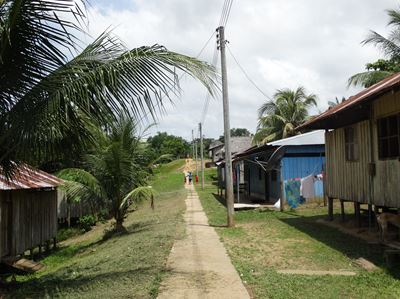 Sous une chaleur accablante, nous entreprenons de rendre visite à deux communautés amérindiennes, par une sentier bétonné. Nous longeons l'Amazone pendant 1 heure