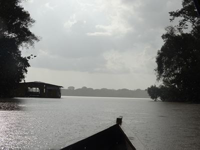 Un cataclysme pendant le retour : des trombes d'eau s'abattent sur l'Amazone, même l'intérieur du bateau est mouillé. Peu ou pas de visibilité.