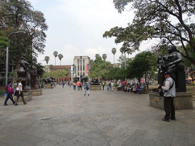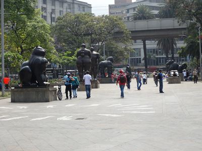 Devant le musée (au fond, en blanc), la plazoleta de las esculturas : une trentaine d'oeuvres de Botero, offertes par le sculpteur