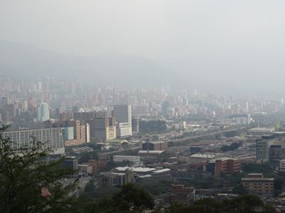 L'après midi, on se rend sur une petite colline d'où on peut dominer tout Medellin ; en descendant, on se prend la saucée de l'année, avec grêle et tempête. Evidemment, nous ne sommes pas protégés...