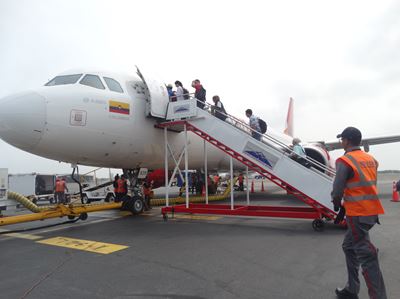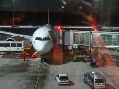 Taxi jusqu'à l'aéroport de Cartagena ; puis premier avion (1 h 30) jusqu'à Bogota ; deuxième avion jusqu'à Madrid (8 h 30) ; et enfin, troisième avion jusqu'à San Sebastian (1 h 15) où Jean Claude nous attend.