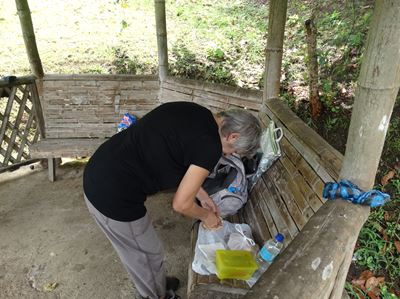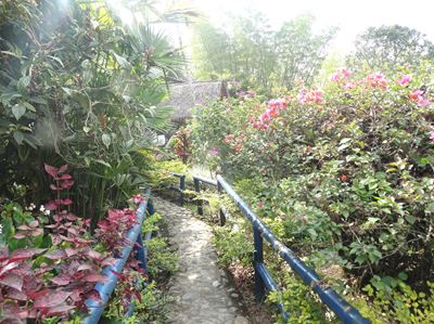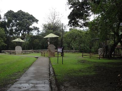 10 heures : tout à coup, la pluie "suave" s'arrête, et il ne pleuvra plus de la journée !!! Quelle chance ! Nous pouvons (enfin) rejoindre le parc archéologique à pied (une dizaine de kilomètres en tout),