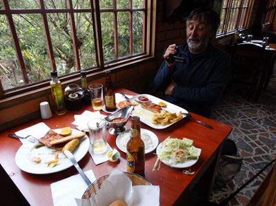 A midi (il est plutôt 15 heures donc 21 heures en France), pendant que certains se régalent à "A Nouste", d'autres, au même moment, s'offrent une petite parrillada de porc