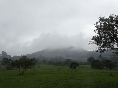 Nous passons au pied d'un volcan, mais nous ne le verrons pas : trop de nuages