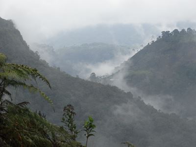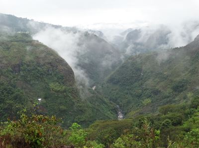 Juste au moment où nous arrivons au 2° site, La Chaquira, la pluie s'arrête, le soleil apparaît provoquant la formation de ces nuages sur le canyon de la Magdalena