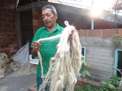 Nous sommes donc partis à Curiti, petit village à 20 mn en bus de San Gil. Là, balade de 2 fois 1 heure pour aller et revenir aux "cinco pozos", de petites baignoires d'une rivière et, plus intéressante, la visite d'une fabrique de fique, fil obtenu à partir d'une plante, la planta del fique, de la famille des agaves