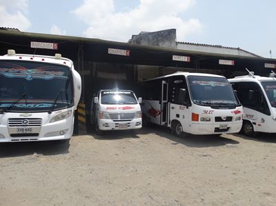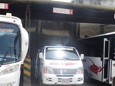 La gare routière des bus locaux avec, au centre, le nôtre, tout petit